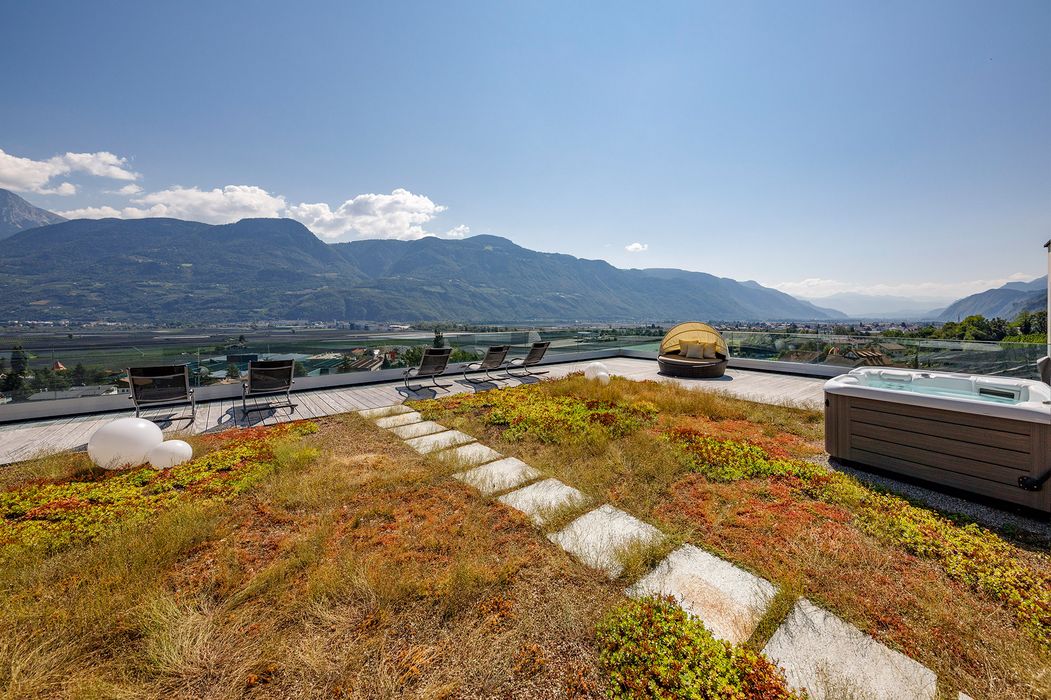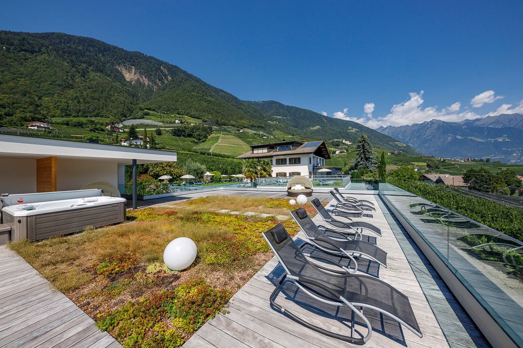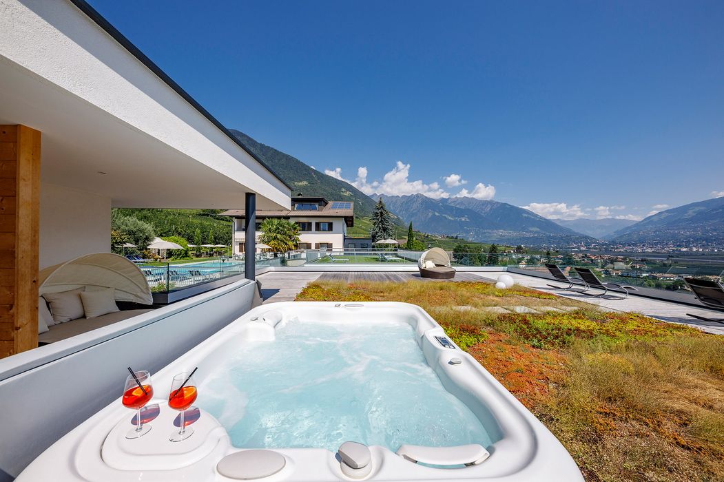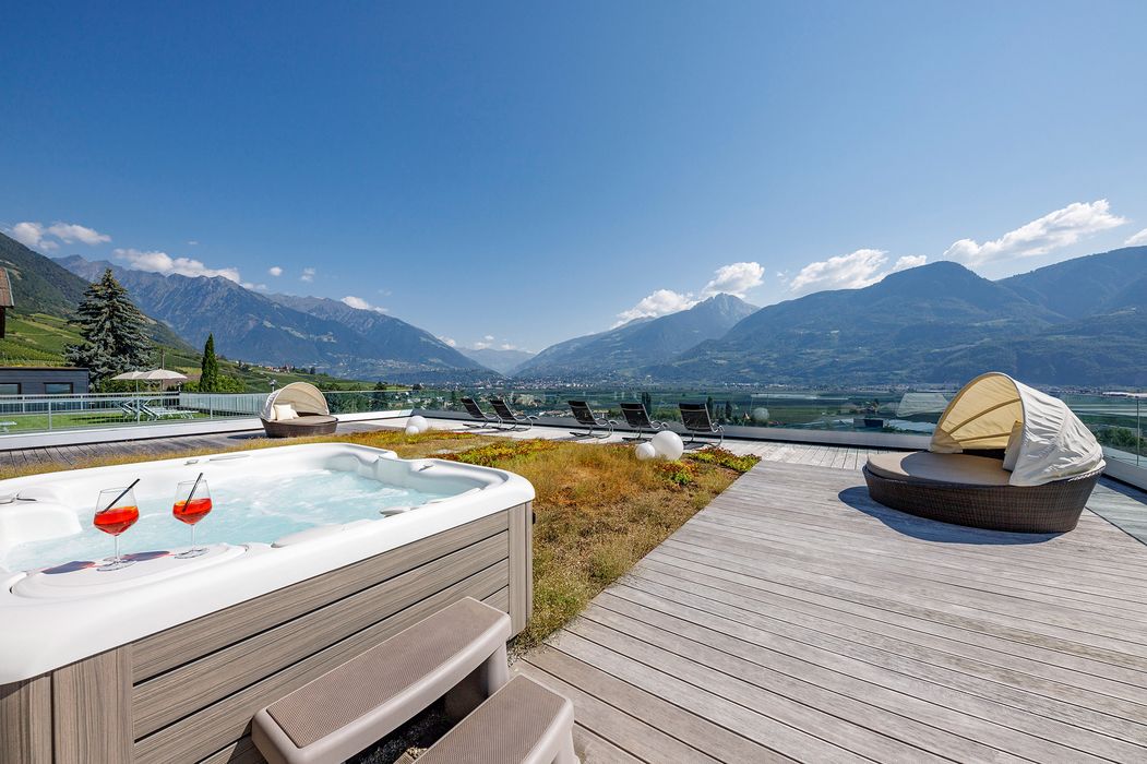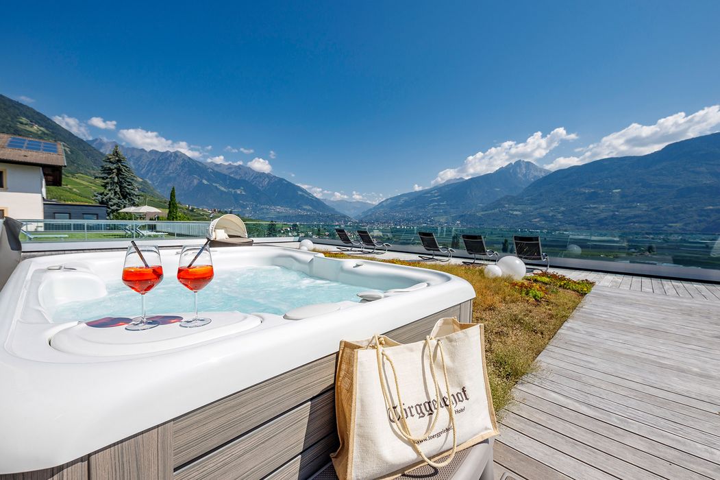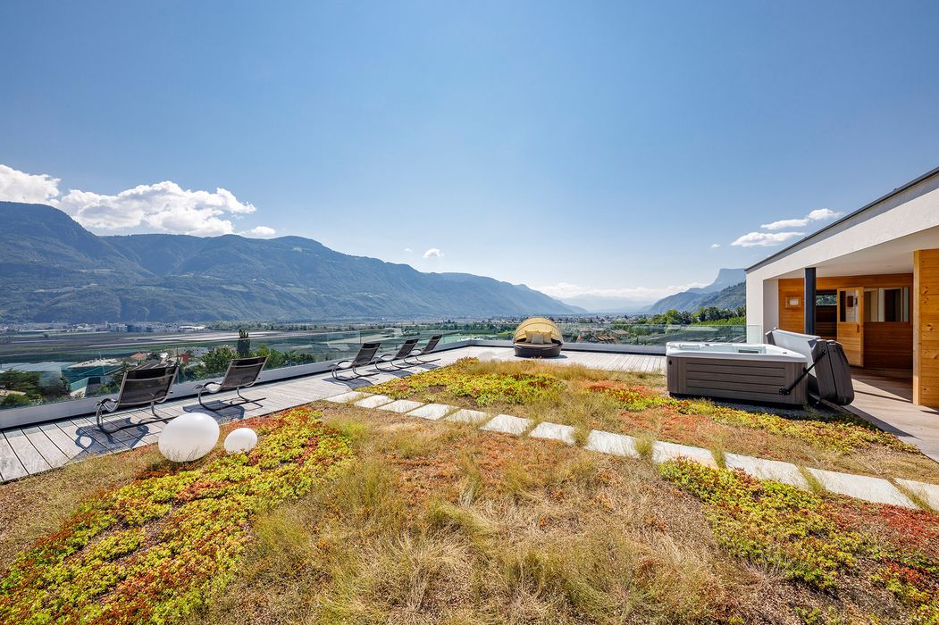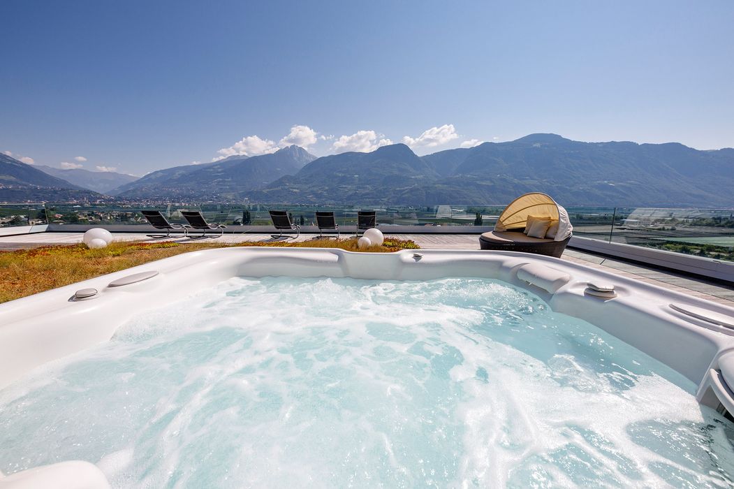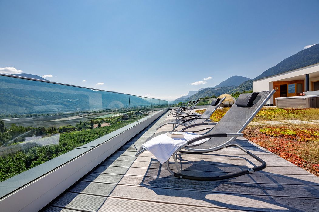 Goditi il tuo momento di relax personale nel nostro rooftopSPA sulla terrazza tranquilla e rilassante, rilassati nel whirlpool e goditi la vista sulle montagne dell'Alto Adige. Dopo un'escursione, puoi sudare nella nostra sauna panoramica finlandese. Rinfrescati nella doccia emozionale e all'aria aperta. Goditi il benessere all'aperto nei nostri lettini privati, nell'amaca o sulle comode sdraio a dondolo.